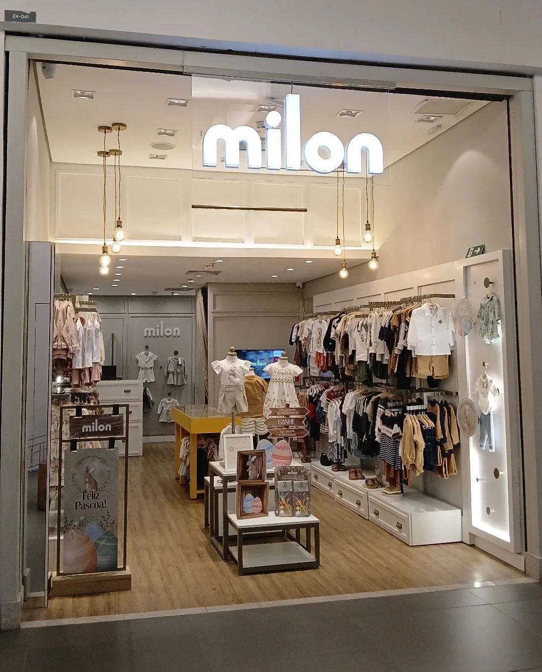 Com uma linha de produtos que atende desde recém-nascidos até o tamanho 14, oferecendo um mix completo de itens, a Milon apresenta linhas de moda infantil feminina e masculina, além de roupas para recém-nascidos, batizado, festa, moda praia, acessórios , calçados e essenciais, oferecendo uma solução completa para o consumidor.
